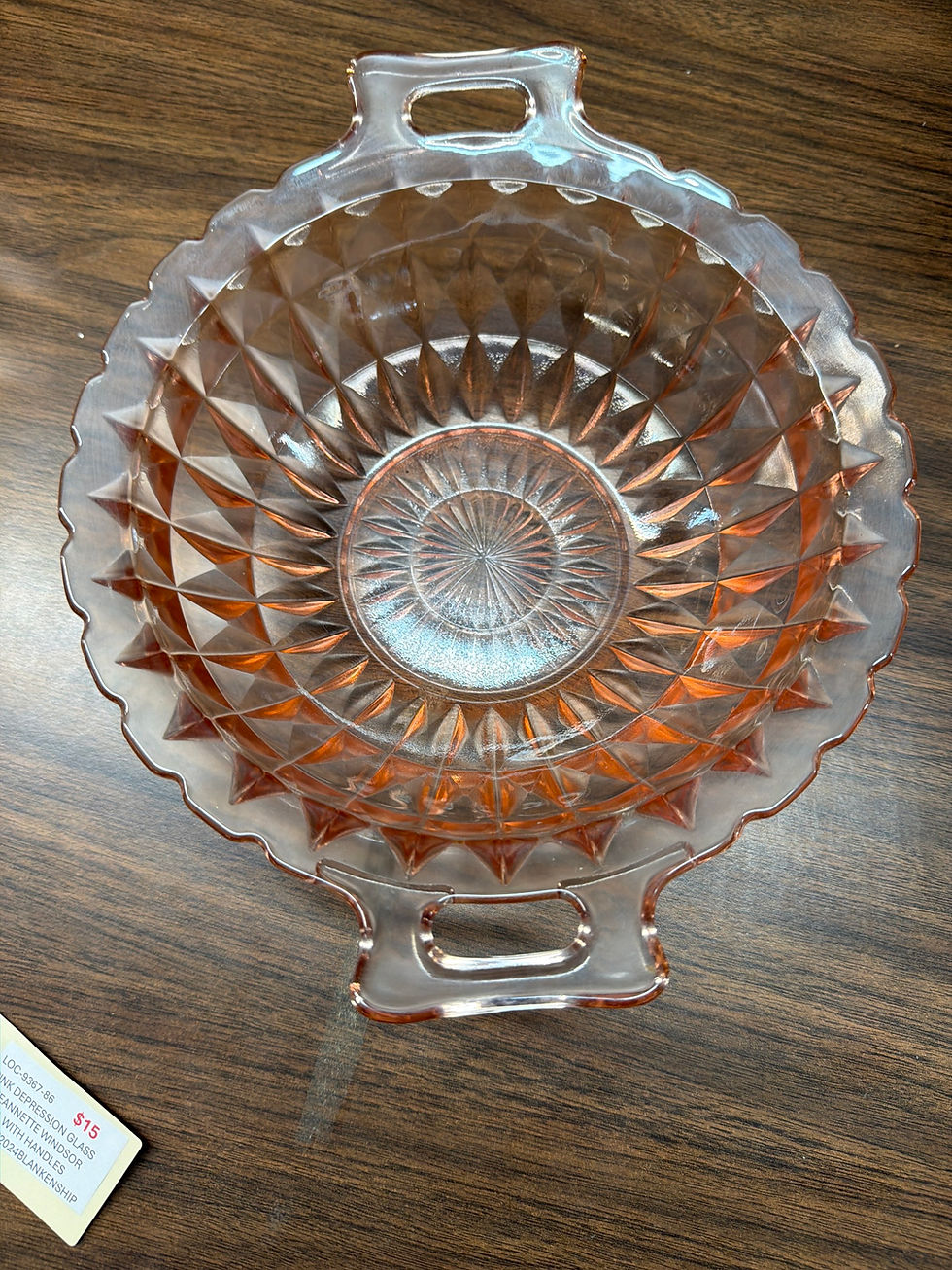 9" DEPRESSION GLASS BOWL WITH HANDLES JEANETTE WINDSOR